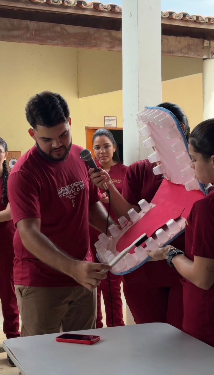 Participaram da atividade estudantes do 7º período do curso de Odontologia. O motivo da escolha do local foi por ser uma região de difícil acesso e, poucas ações como essa são realizadas.