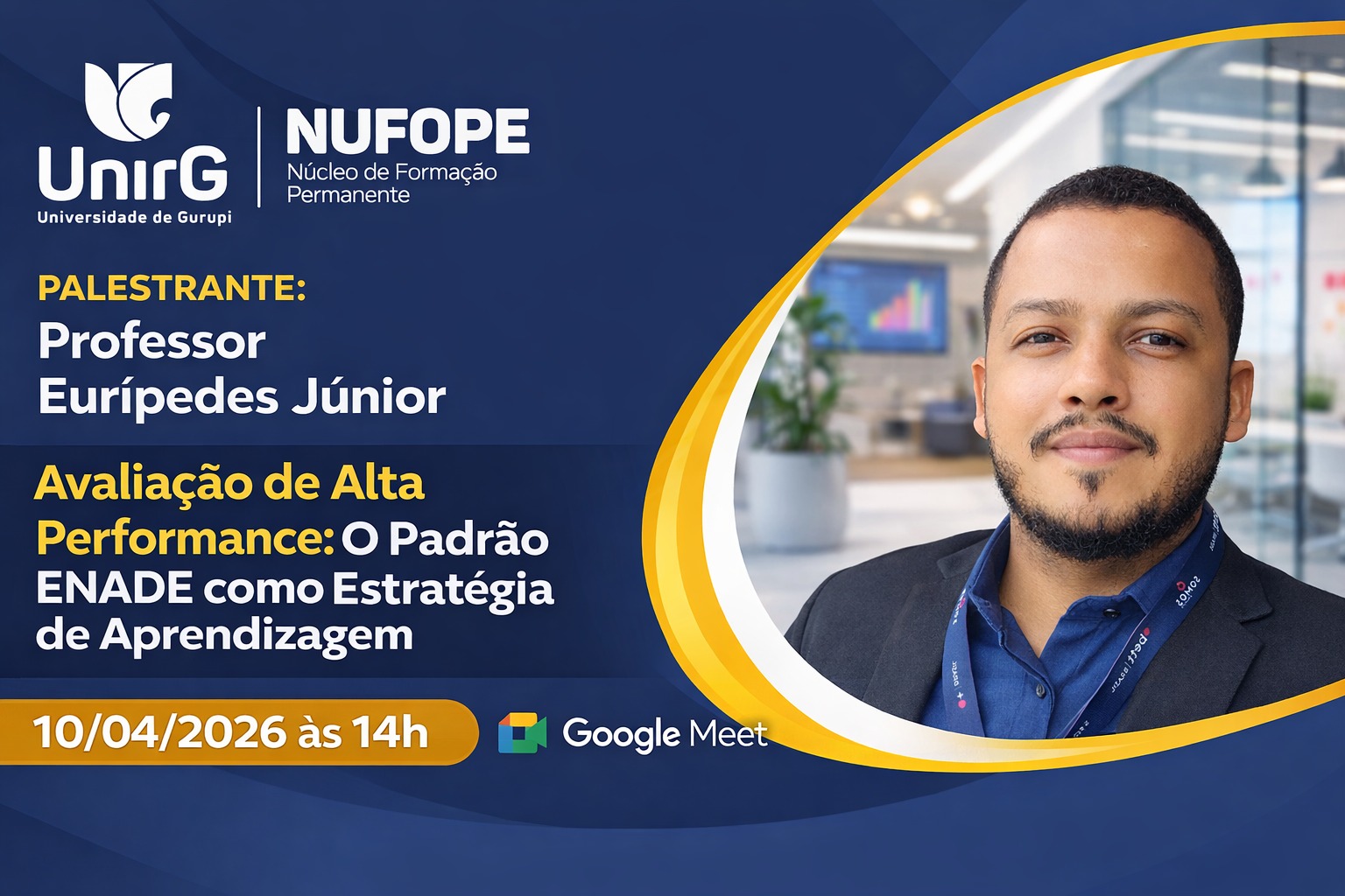 No próximo dia 10, às 14h, será transmitida pelo Google Meet a palestra “Avaliação de alta performance: o padrão Enade como estratégia de aprendizagem”. A formação é aberta ao público e será ministrada pelo consultor de negócios, professor universitário e empresário, Me. Eurípedes Martins Júnior. As inscrições são gratuitas e podem ser realizadas pelo link: https://iow.unirg.edu.br/eventos/evento.php?e=11789
