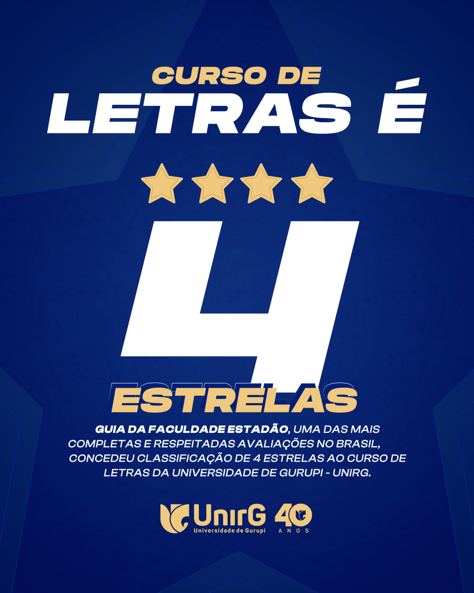 Uma das mais completas e respeitadas avaliações no Brasil, o Guia da Faculdade Estadão, concedeu classificação 4 estrelas ao curso de Letras da Universidade de Gurupi - UnirG. A publicação ocorreu essa semana e evidencia a qualidade do curso que já tem 25 anos de história na formação de...