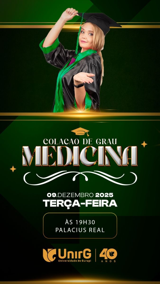 Na próxima terça-feira, 09, a Universidade de Gurupi - UnirG, realizará a 36° solenidade de colação de grau do curso de Medicina. A cerimônia ocorrerá no Palacius Real, às 19h30.