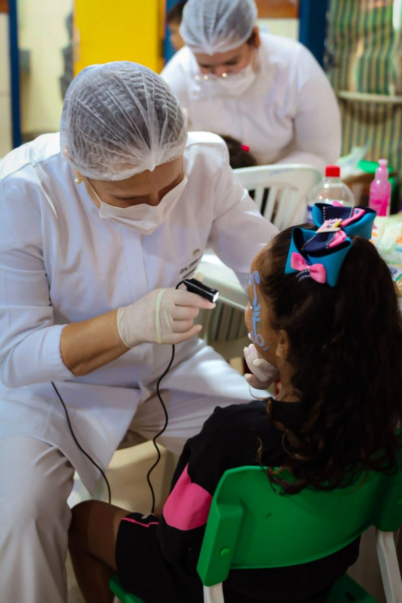 Estudantes de Educação Física, Farmácia e Enfermagem também participaram do evento, promovendo atividades esportivas, realizando testes de tipagem sanguínea e oferecendo orientações sobre hipertensão, diabetes, hanseníase e gravidez na adolescência.