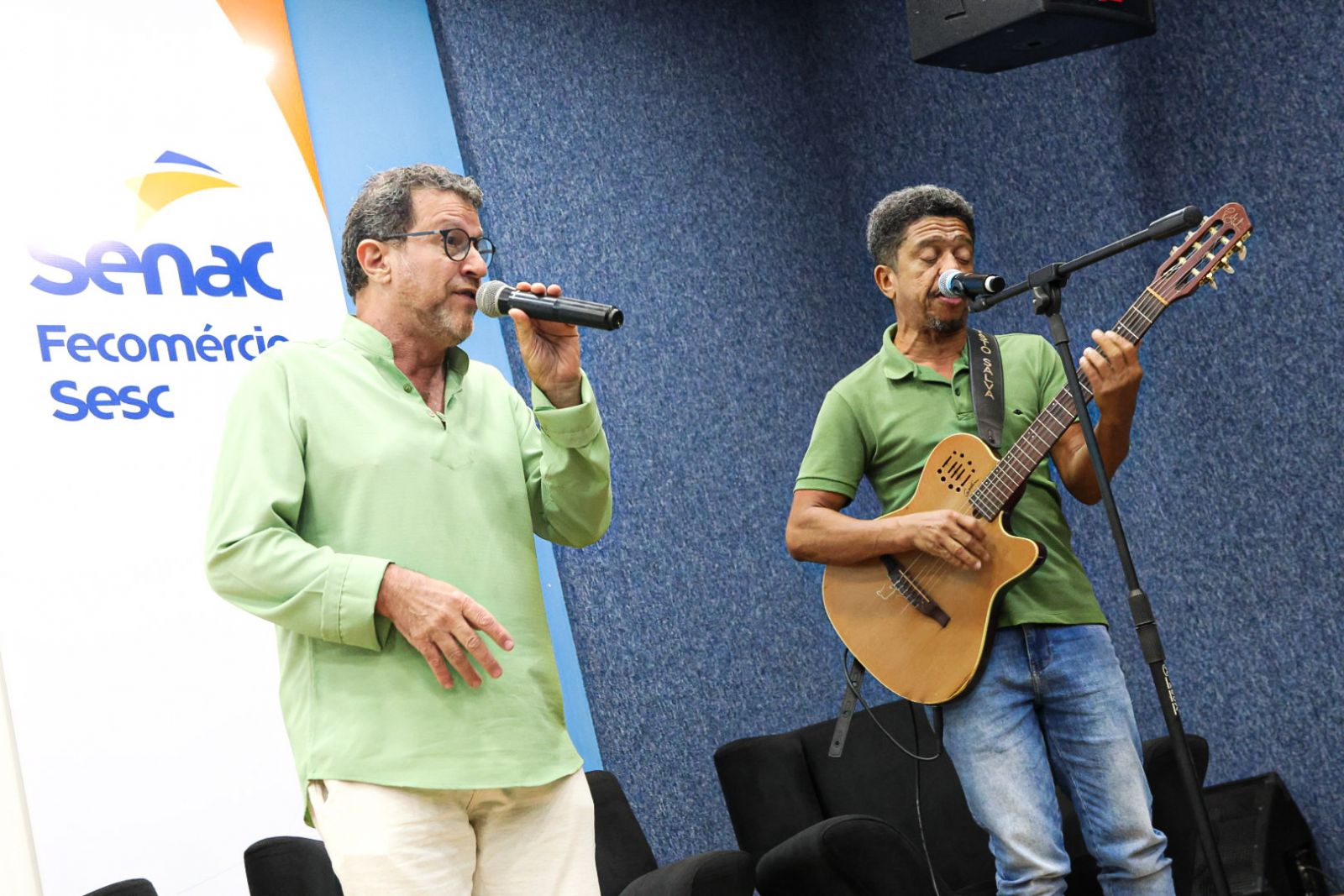 Os egressos do curso e músicos, Chico Chocolate e Paulo Albuquerque agraciaram o público com uma apresentação musical de composições de artistas regionais.